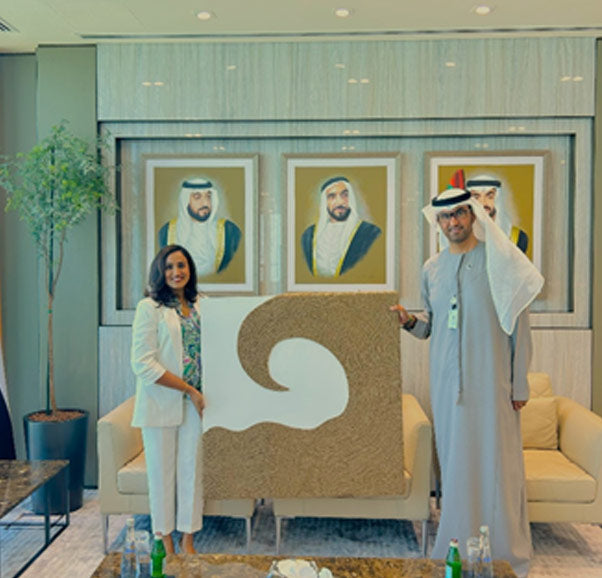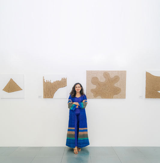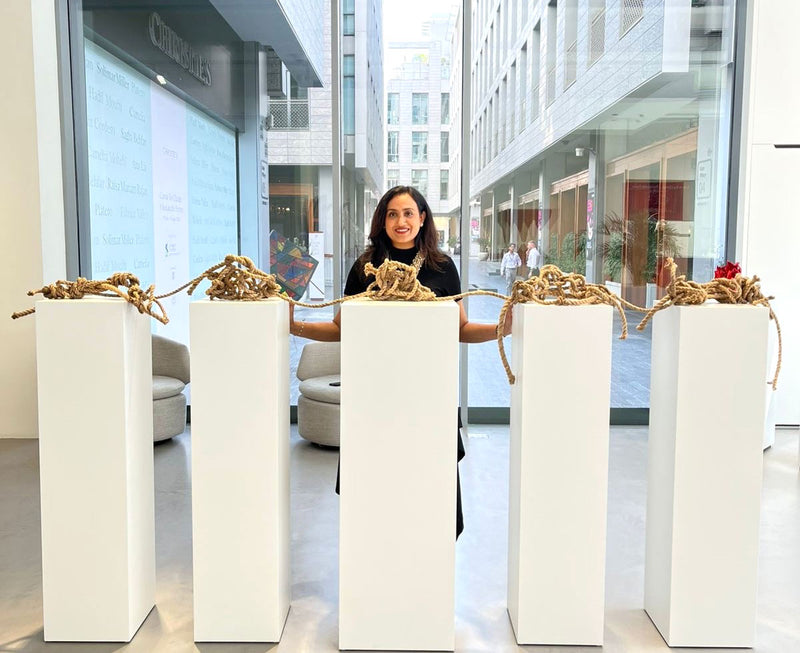 Raisa created a series of artwork using rope as a medium to celebrate the inherent connection of the art, craft and culture of UAE with nature. This collection of artworks, like her earlier works are connected to the five elements and the naturally formed wonders in nature like the stalagmites, the root bridge and Al Ula. She also focusses on the immense power that these elements carry by portraying the mighty oceanic waves, glaciers and wildfire. Raisa’s experience in architecture has been helpful in the artistic creation of complex structures which are not only depictions but also aesthetically pleasing tales of their historic and cultural significance.