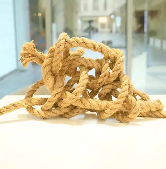 In A Reflection of Nature, I reimagine the Earth’s quiet and powerful voice through rope — an everyday material turned into something elemental. My works echo landscapes that time has sculpted: wildfires frozen mid-burn, waves caught in motion, stalagmites and stalactites whispering from the earth’s deep silence.