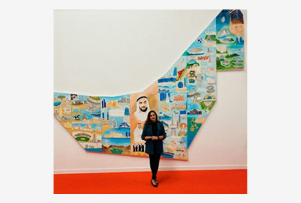Raisa is the director and concept creator of jumbo art named “The Journey of Jawhara”, an artistic journey through the history of UAE has been unveiled in DIFC, Dubai as a part of the 50th National Day celebrations. The size of the artwork is 6m height and 5.5m width which represented the 7 emirates on the 7 different sized canvas to form the shape of UAE map. She has used her exclusive sustainable art products in Jawhara.
