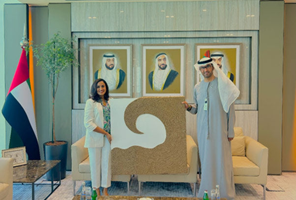 A memorable meeting with H.E.Dr Sultan Ahmed Al Jaber, President of COP28, Minister of Industry and Advanced Technology, Managing Director and Group Chief Executive of ADNOC, and the cherry on top - my work has been chosen to adorn the walls in his office. An artist's journey is led forward by leaps and bounds when there is true appreciation for their efforts. It was a culmination of a lot of memorable days, starting from the opportunity to do a solo exhibition in COP28, Blue Zone to my work being chosen to decorate the office. The journey of my rope art "Tranquility” started from Expo City and now it is at one of the most prestigious destinations a sustainable art can reach.